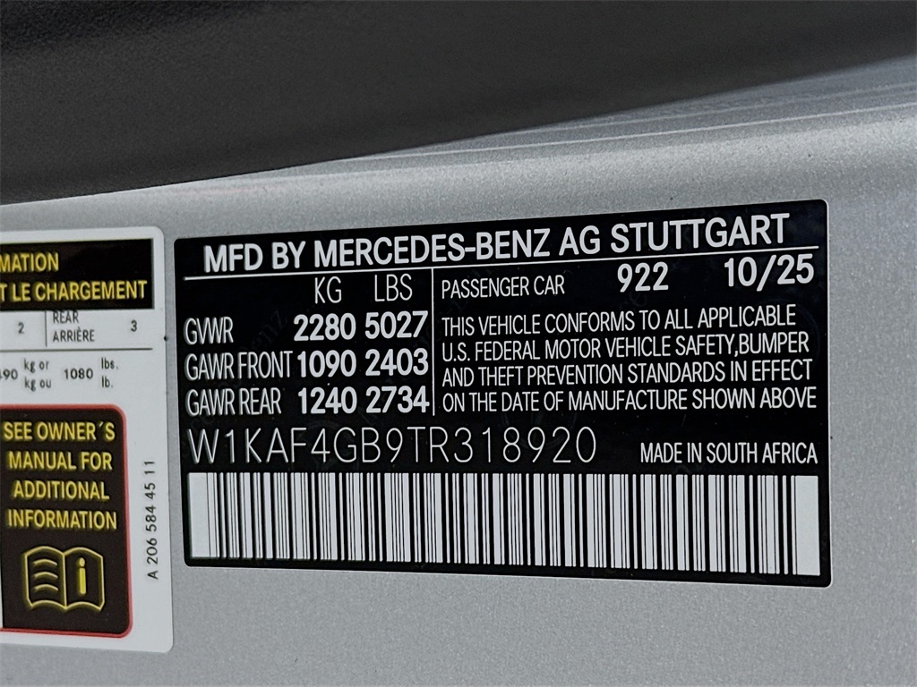 - VIN : W1KAF4GB9TR318920