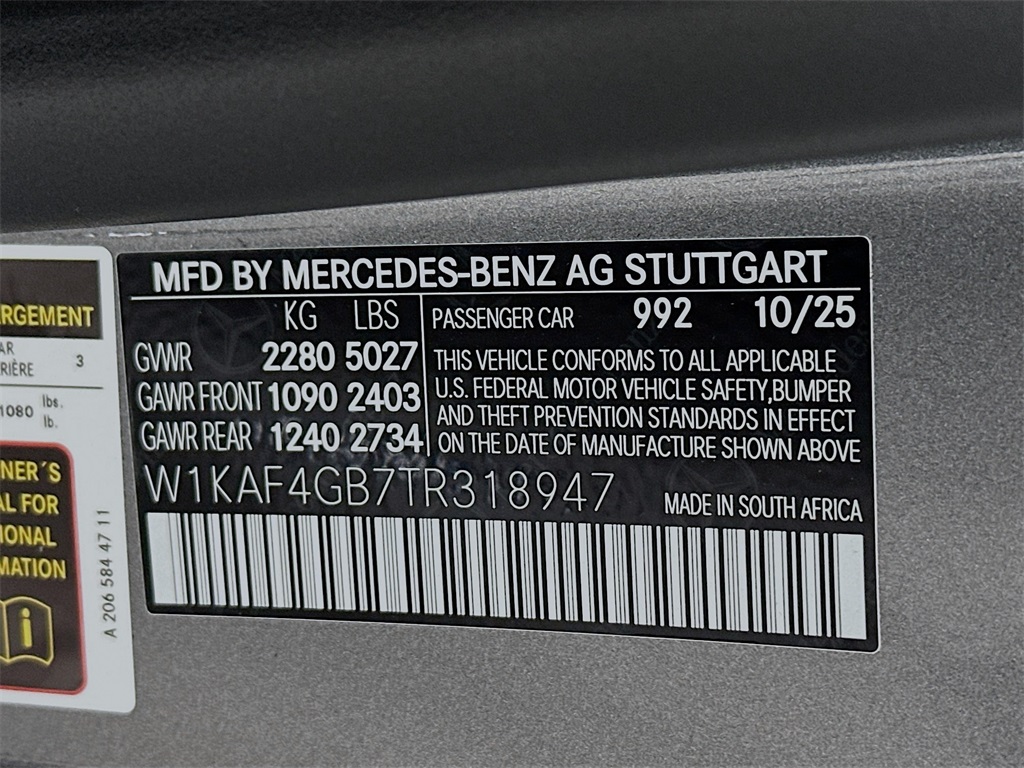 - VIN : W1KAF4GB7TR318947