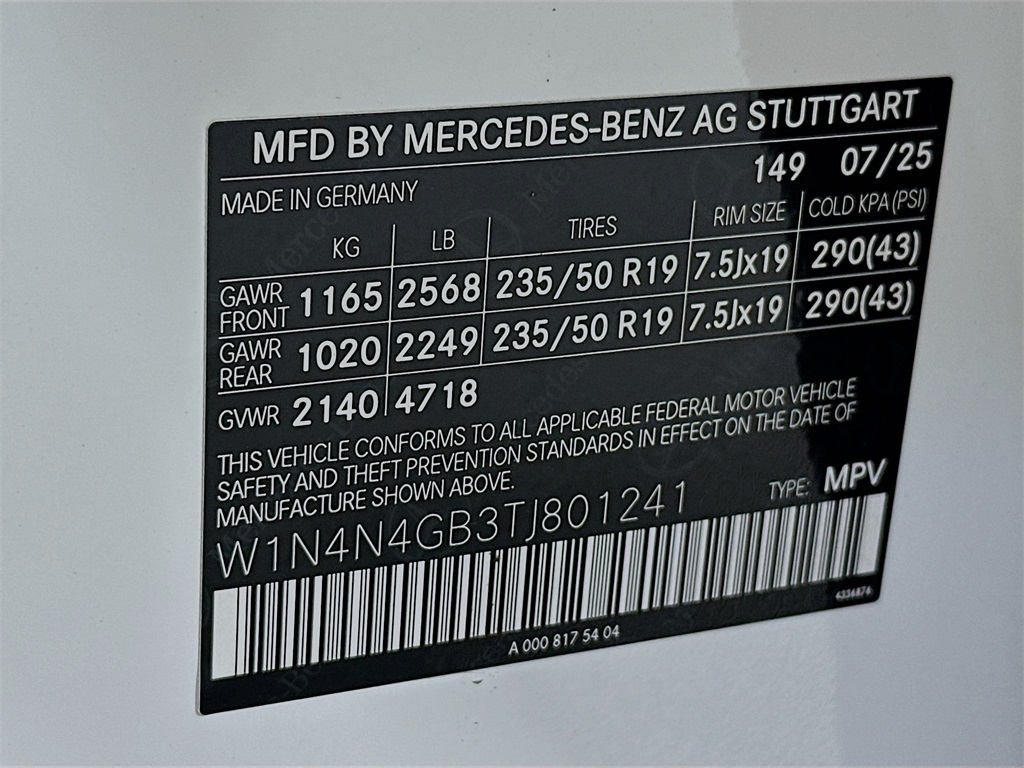 - VIN : W1N4N4GB3TJ801241