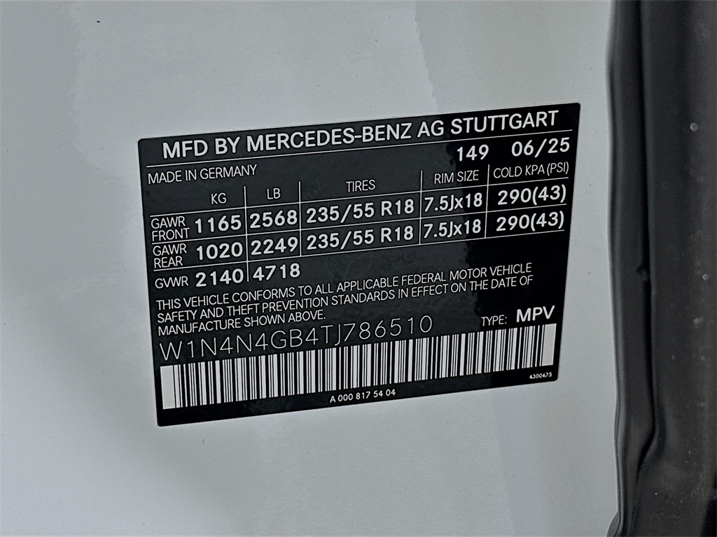 - VIN : W1N4N4GB4TJ786510