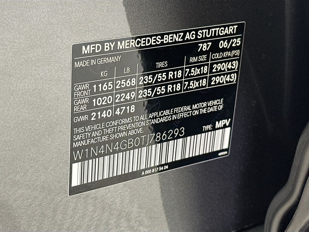 - VIN : W1N4N4GB0TJ786293