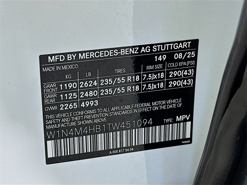 - VIN : W1N4M4HB1TW451094