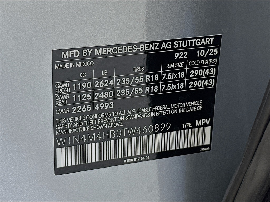- VIN : W1N4M4HB0TW460899