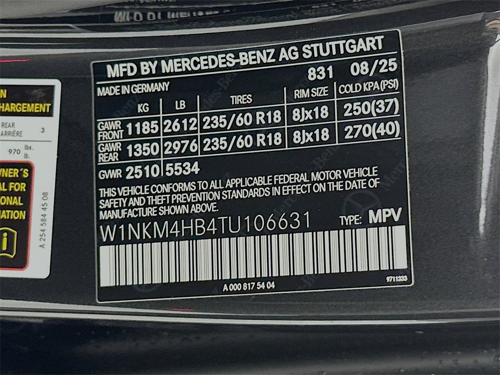 - VIN : W1NKM4HB4TU106631