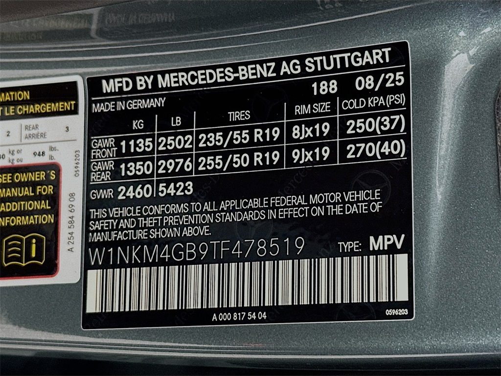 - VIN : W1NKM4GB9TF478519