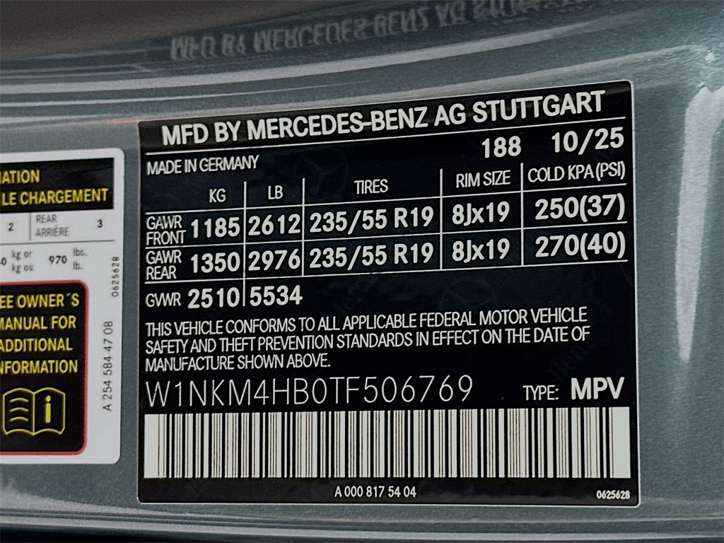 - VIN : W1NKM4HB0TF506769