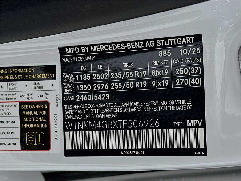 - VIN : W1NKM4GBXTF506926