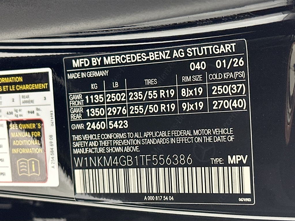 - VIN : W1NKM4GB1TF556386
