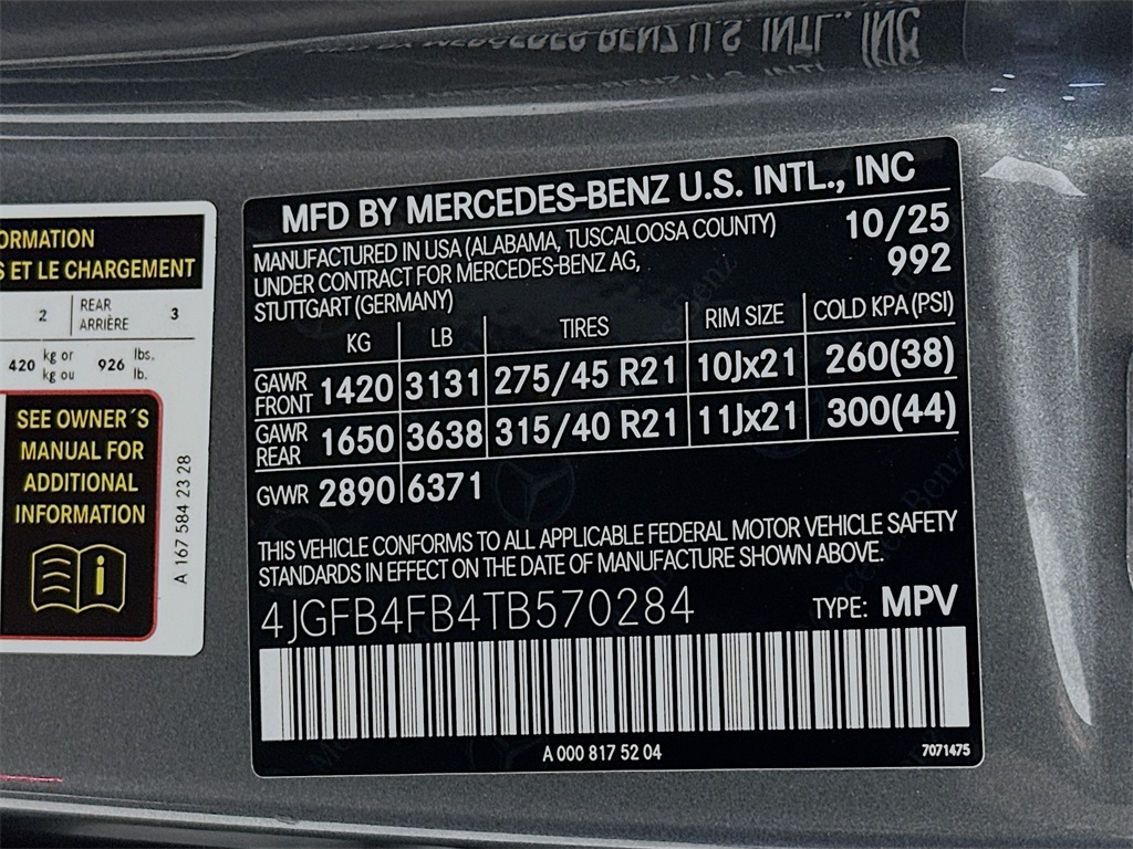 - VIN : 4JGFB4FB4TB570284