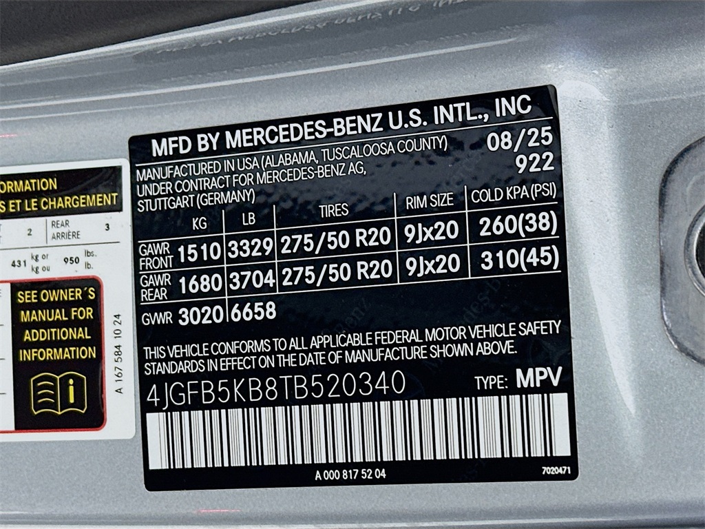 - VIN : 4JGFB5KB8TB520340
