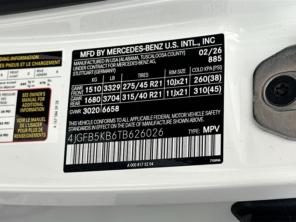 - VIN : 4JGFB5KB6TB626026