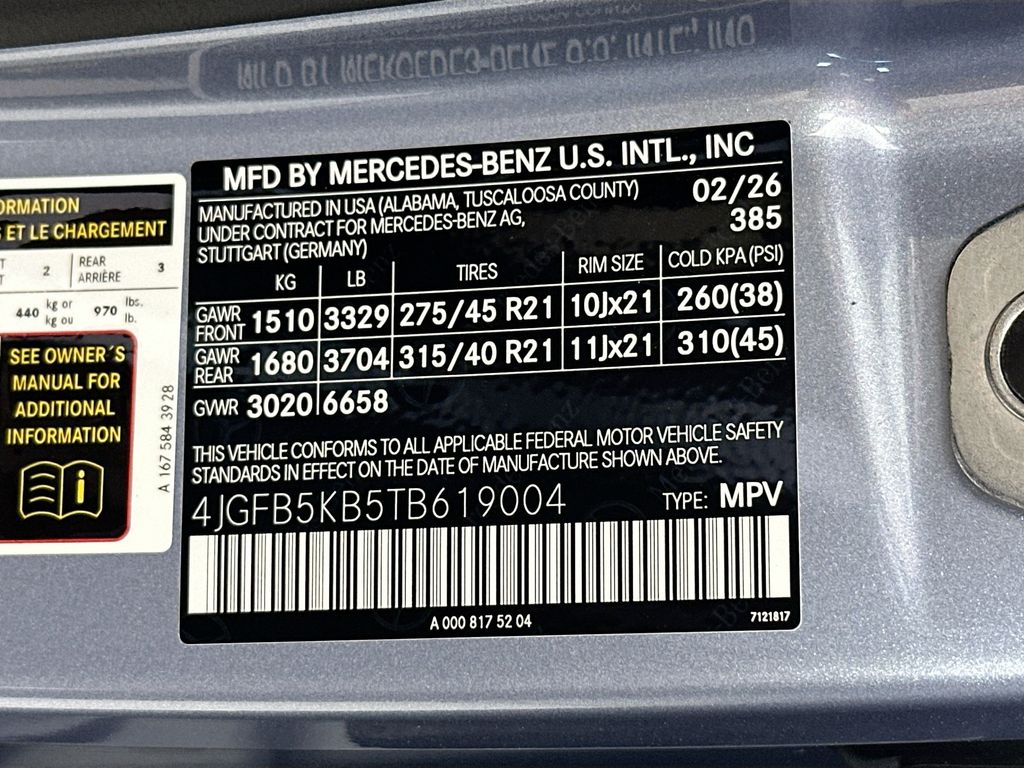- VIN : 4JGFB5KB5TB619004
