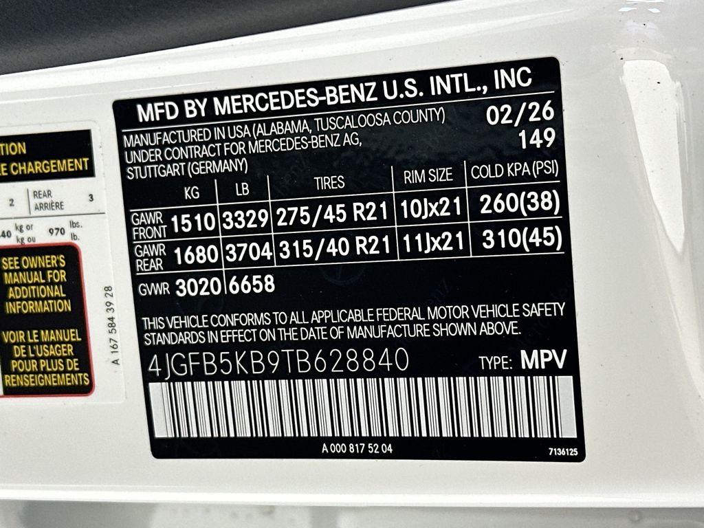 - VIN : 4JGFB5KB9TB628840