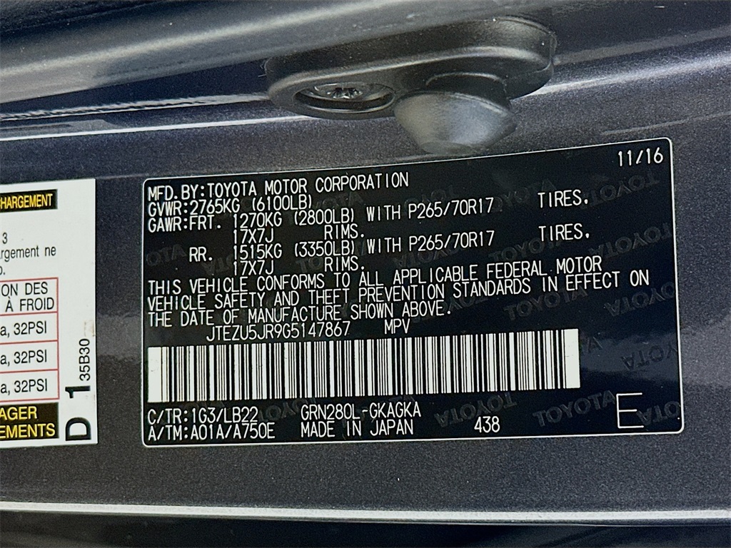 - VIN : JTEZU5JR9G5147867