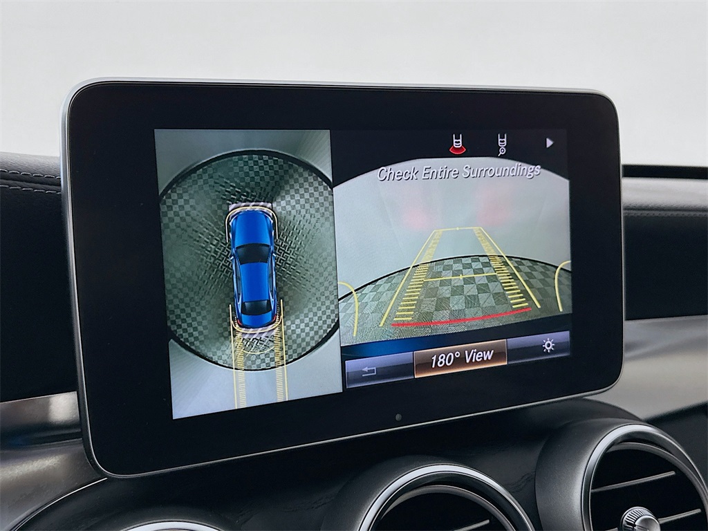 - Performance Exhaust: The AMG Performance Exhaust delivers a captivating exhaust note that can be adjusted with the push of a button. Premium 3 Package: This top-tier package includes: Burmester Surround Sound System COMAND Navigation with an 8.4-inch high-resolution screen AMG Illuminated Door Sills Ambient Interior Lighting with multiple colors HANDS-FREE ACCESS and an electronic trunk closer Parking Assist Package: Maneuver into tight spots with confidence thanks to PARKTRONIC with Active Parking Assist and a Surround View Camera. Driver Assistance Features: Blind Spot Assist: Provides visual and audible warnings of vehicles in your blind spots for safer lane changes. Wheels: The vehicle is fitted with sharp 18-inch AMG wheels. Interior: The luxurious and comfortable interior features grey leather seating.