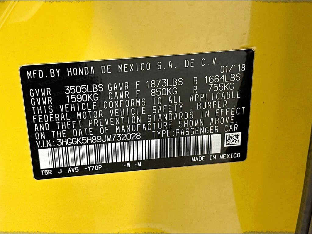 - VIN : 3HGGK5H89JM732028