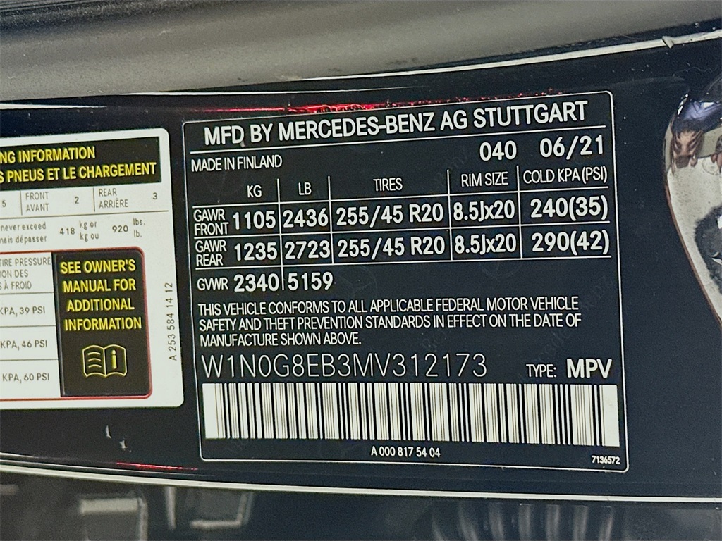 - VIN : W1N0G8EB3MV312173