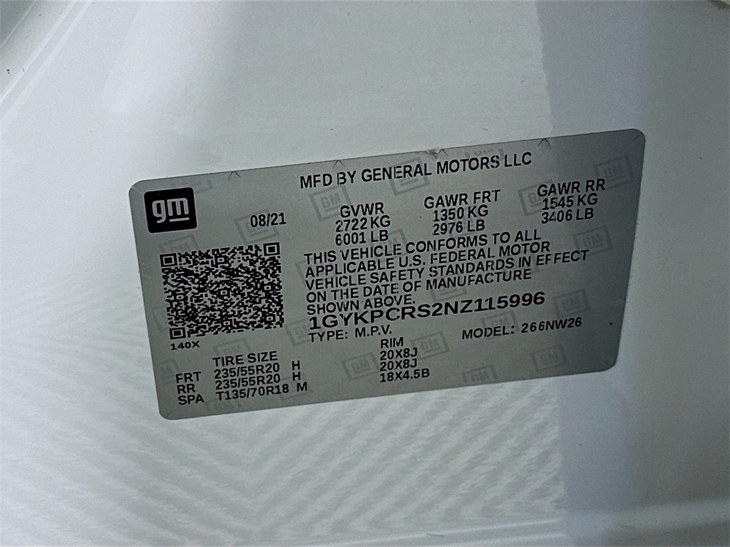 - VIN : 1GYKPCRS2NZ115996
