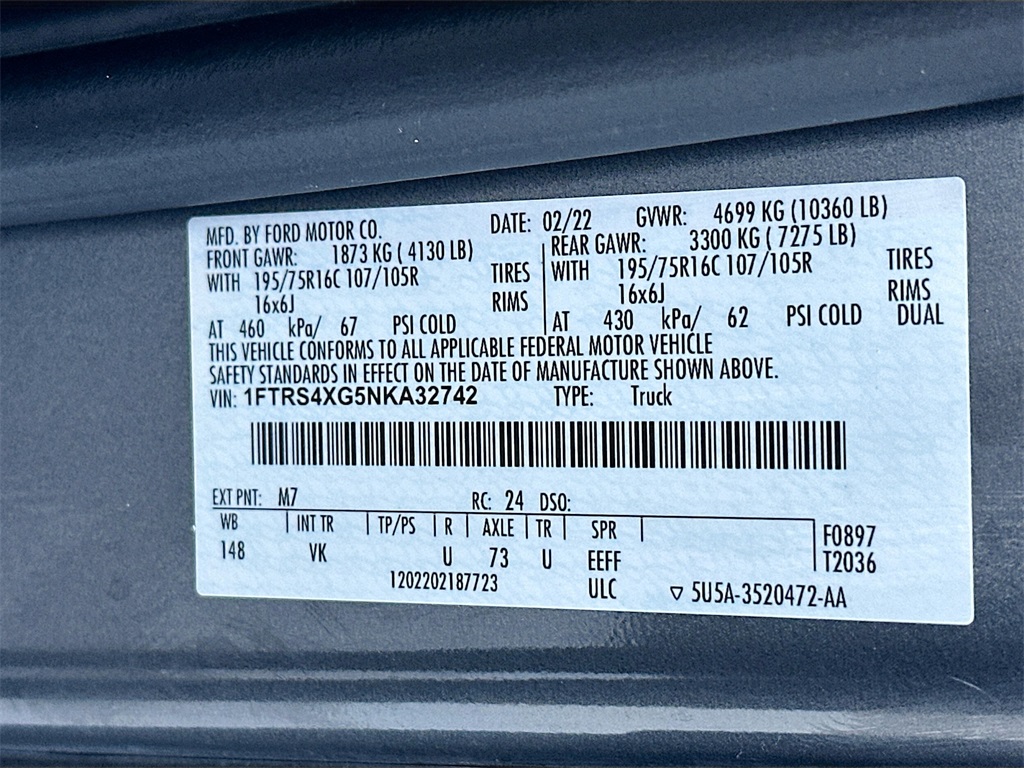 - VIN : 1FTRS4XG5NKA32742