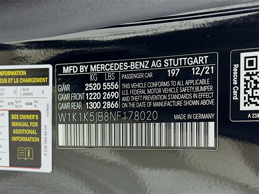 - VIN : W1K1K5JB8NF178020