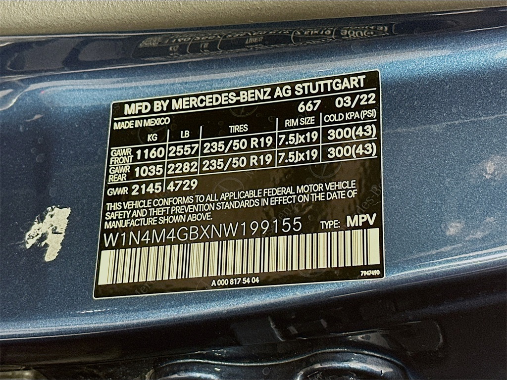 - VIN : W1N4M4GBXNW199155