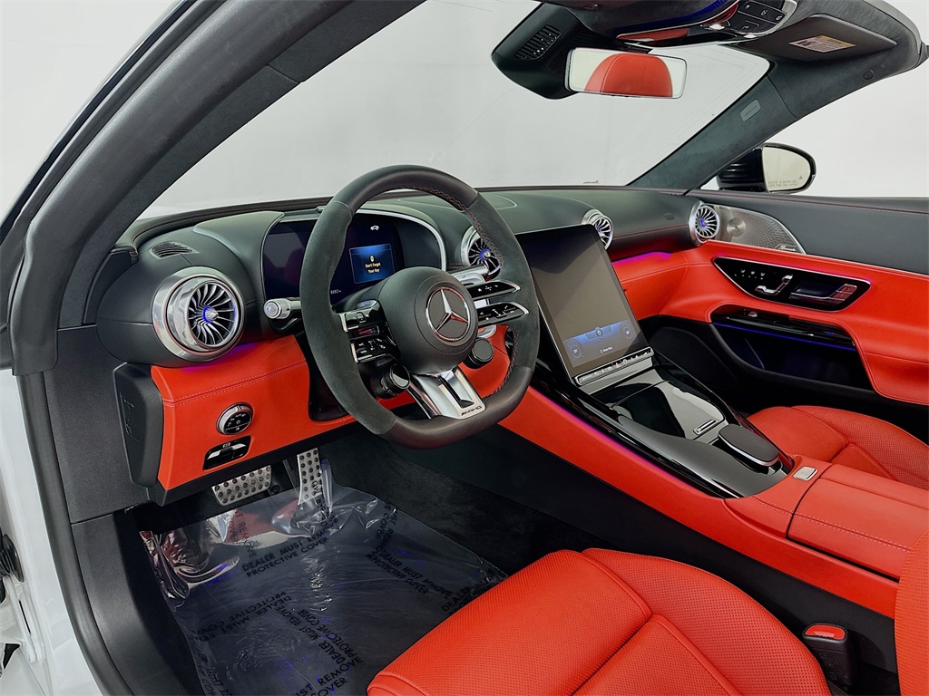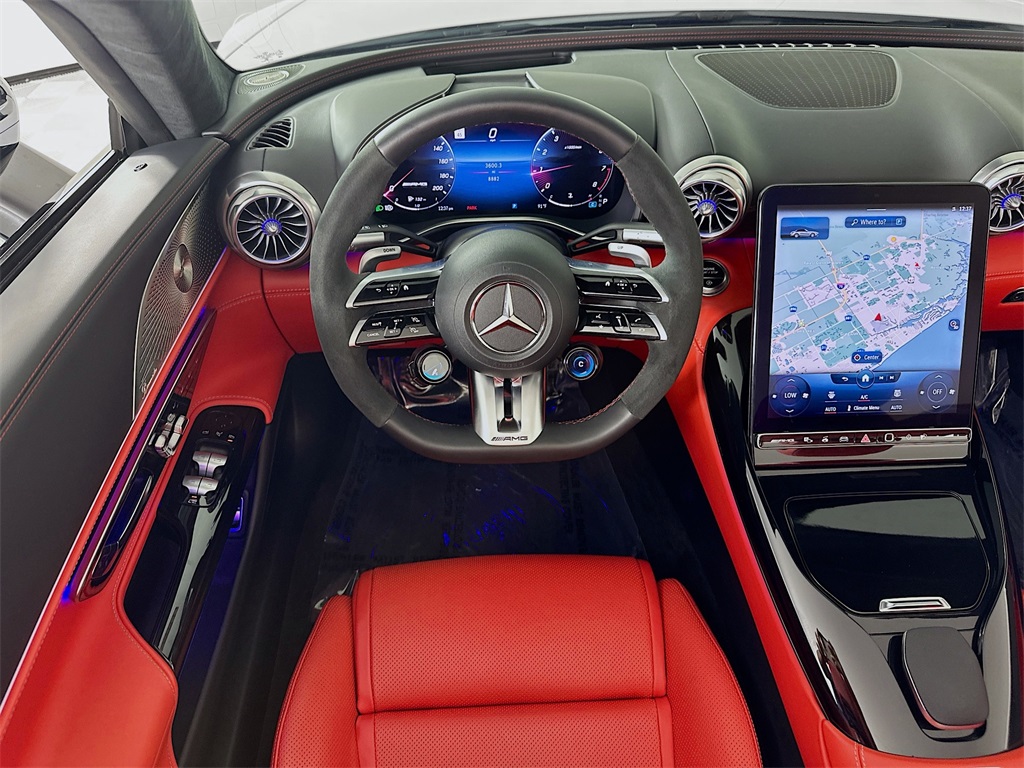 - 2022 SL55R COVERTIBLE IN MOONLIGHT WHITE EXTERIOR WITH RED PEPPER/BLACK NAPPA LEATHER INTERIOR IS EQUIPPED WITH PERFORMANCE LINE, AMG ELECTRONIC LIMITED-SLIP DIFFERENTIAL, AMG ACTIVE RIDE CONTROL, AMG TRACK PACE, AMG HIGH-PERFORMANCE COMPOUND BRAKE SYSTEM, MULTICONTOUR FRONT SEATS W/MASSAGE FUNCTION, HEAD-UP DISPLAY, BURMESTER SURROUND SYSTEM, AMG PERFORMANCE STEERING WHEEL IN NAPPA LEATHER, AMG EXTERIOR NIGHT STYLING, POWER SEATS, DIGITAL SCREEN, REAR-AXLE STEERING, BLIND SPOT MONITOR, PARKTRONIC WITH ACTIVE PARKING ASSIST, ACTIVE BRAKE ASSIST, ACTIVE LANE KEEPING ASSIST, HEATED AND VENTILATED SEATS, HEATED STEERING WHEEL, 21" AMG 10-SPOKE Y -DESIGN WHEELS AND MANY MORE OPTIONS. CALL US OR SENT AN EMAIL TO GET MORE INFORMATION ABOUT THIS VEHICLE.