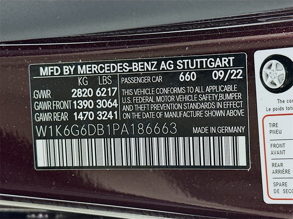 - VIN : W1K6G6DB1PA186663