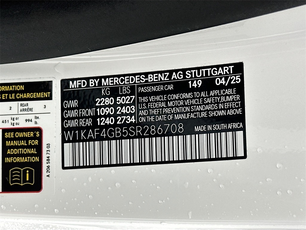 - VIN : W1KAF4GB5SR286708