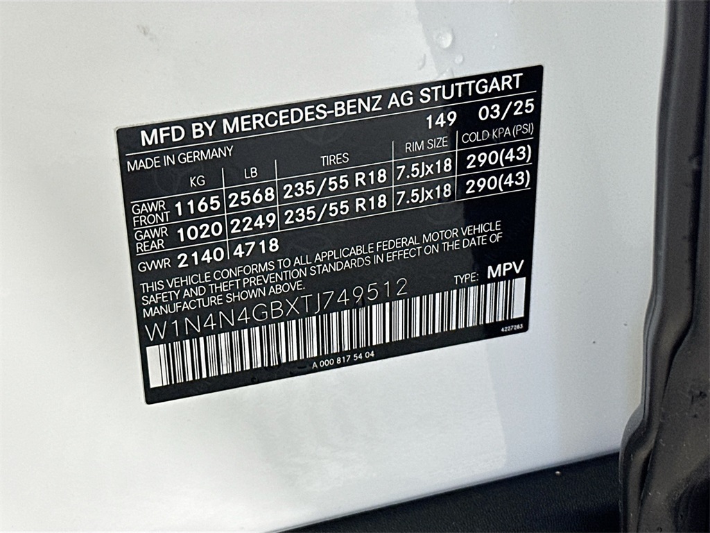 - VIN : W1N4N4GBXTJ749512